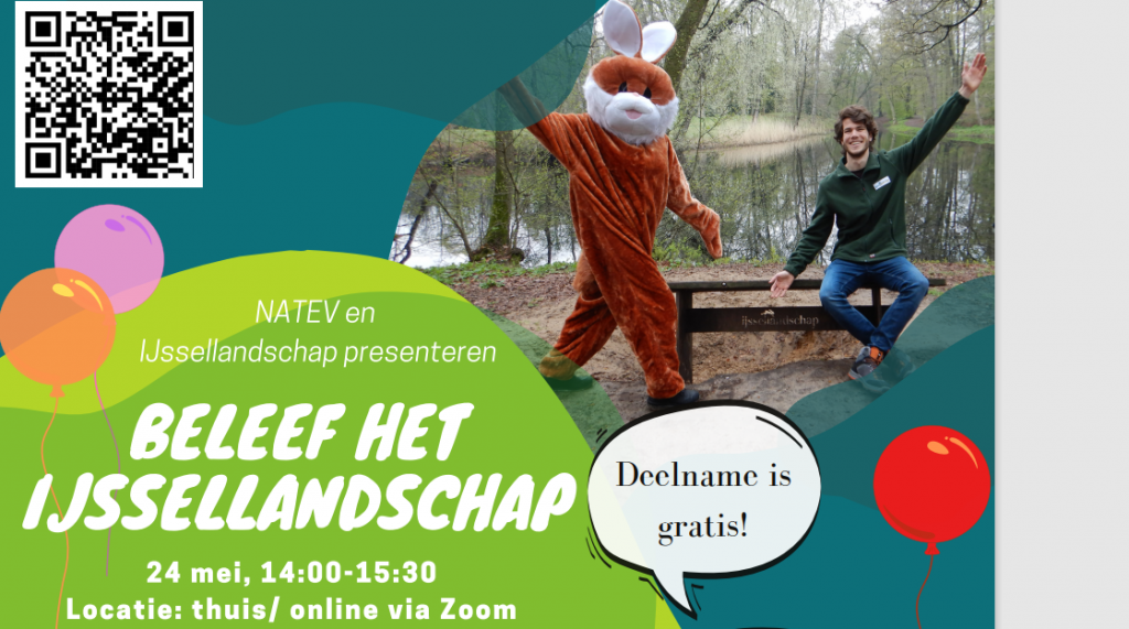 Op maandag 24 mei a.s. (2e pinksterdag) vieren we een online natuurfeestje. Van 14.00 uur – 15.30 uur kun je vanuit je huis samen met ons het IJssellandschap beleven. Boswachter Lasse en Hazel de Haas nemen je mee op avontuur naar het huis van Daisy in het bos.