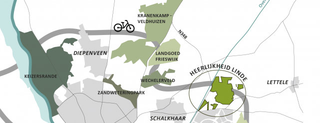 Het Linderveld is onderdeel van het waardevolle landelijk gebied, grenzend aan de noordoostelijk stadsrand van Deventer. Het vormt de verbinding tussen de Vijfhoek en de dorpen Lettele en Schalkhaar.