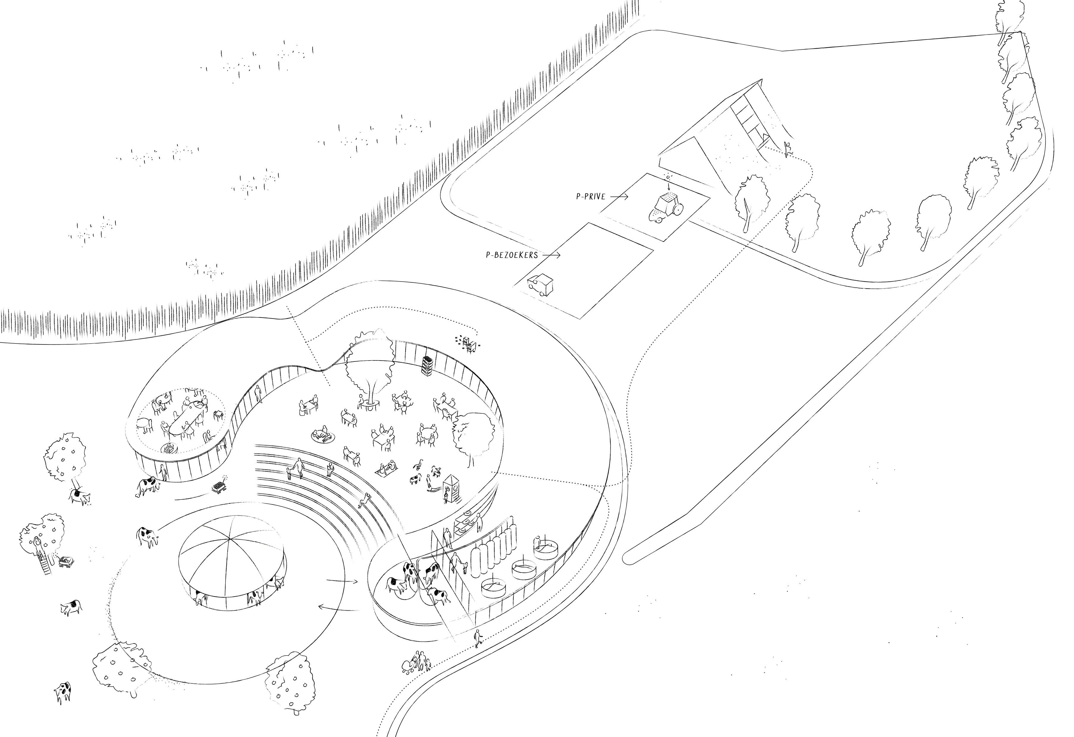 Sanne en Christian gaan op het erf samen met andere ondernemers duurzame (agrarische) producten en diensten ontwikkelen en vermarkten. Een samenwerkingsmodel, waarin gelegenheid is om een brede bedrijfsontwikkeling verder te laten groeien. Ook wordt er ruimte in het gebied gecreëerd waar de bezoekers stil kunnen staan bij de bijzondere functie van het gebied. De wijk De Vijfhoek wordt door een nieuw te vormen ‘meent’ verbonden aan het ‘hart’, het erf. Hierdoor is het toegankelijk en staat het gebied open voor iedereen.