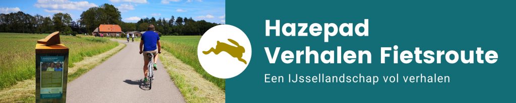 HAZEPAD Verhalen FIETSROUTE Spionnen, jagers en boeren. Heden, verleden en toekomst. Alles komt voorbij in de Hazepad verhalenfietsroute door het IJssellandschap. Een afwisselende fietsroute over het kenmerkende ‘platteland’ van Salland. Onderweg fiets je door bossen en natuurgebieden, langs weilanden, boerderijen en landgoederen. En langs de IJssel. Het landschap lijkt vanzelfsprekend, maar dat is het natuurlijk niet. Wat leeft er in dat natuurgebied? Van wie zijn die koeien eigenlijk? Wie woont er op de boerderij en wie heeft zijn sporen achtergelaten op het landgoed? Ontdek het landschap en haar (voormalige) bewoners door de verhalen die je onderweg tegenkomt en die je kunt luisteren, lezen en zien. Verhalen die verzameld zijn door onze vrijwillige verhalenvangers worden afgewisseld met verhalen uit het verleden, met verhalende podcasts en animaties. Alle verhalen vormen samen het IJssellandschap. Net zoals de twaalf ornamenten van de paalmutsen (ontwerp Marieke de Jong) samen een haas vormen. Zie: VERHALENPALEN De route gaat over de fietsknooppunten en kent voor de avonturiers een aantal zwerfommetjes: DE SLAKKEROUTES Heb je zelf een mooi IJssellandschap verhaal of een verhalenvraag? We horen het graag! info@ijssellandschap.nl