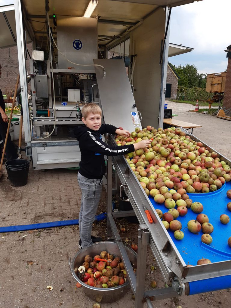 Vorig jaar was het eerste jaar dat we ons verdiepten in de fruitteelt. Geen sinecure. De peren bleken te laat geplukt en bovendien te dicht op elkaar gepakt, waardoor het al gauw pulp werd, en de appels gingen 3 x vaker door de handen dan eigenlijk nodig was. Gelukkig konden we gebruik maken van de kennis van specialisten zoals boer Mindert van Overkempe en leert men al doende. Maar het blijft natuurlijk een bijzondere tak van sport die we er maar even ‘bij doen’. Natuurlijk maken dit soort toevallige bijkomstigheden bij IJssellandschap het werk ook afwisselend en zijn onze vrijwilligers een grote hulp. We hadden er deze keer zelfs een heel jonge enthousiaste vrijwilliger bij, Bjarne, zoon van een van onze medewerkers. Jong geleerd, oud gedaan!