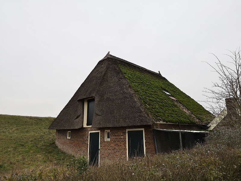 De boerderij heeft een rietgedekt wolfdak (wolven komt van ‘welven’, glooien). Vroeger werd er gebruik gemaakt van stro, dat overbleef van de roggeoogst. Toen de roggebouw verdween, maakte het stro plaats voor riet dat ook veel langer mee gaat. Recent is een deel van de rietenkap vervangen en is er extra timmerwerk uitgevoerd aan de sporen van de kap. Ook een deel van het dak van de bijbehorende schuur is vervangen. Uiteraard is bij deze restauratie/vervanging gebruik gemaakt van riet uit de “kop van Overijssel”. Door de goede waterkwaliteit waarin dit riet groeit mag dit riet zich als één van de beste kwaliteit riet ter wereld noemen. Door de gunstige ligging van de daken (zon en wind kan er goed “omheen”) kunnen deze daken weer circa 30 tot 35 jaar mee. De karakteristieke rolnok zal tussentijds één of twee keer vervangen moeten worden gezien de gemiddelde technische levensduur van deze toegepaste nok.