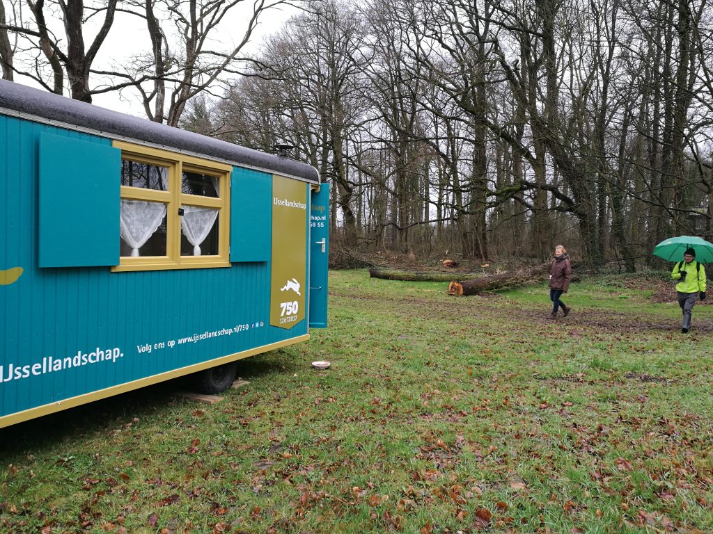 En oh ja, natuurlijk ook proeven; van het daslook (Allium ursinum). De soortaanduiding ursinum (= van de beren, Ursus = beer) is ontstaan door het oude bijgeloof dat beren na hun winterslaap zich eerst aan deze plant tegoed deden. Dit is er ook de oorzaak dat de plant af en toe ook berenlook (en in het Duits Bärlauch) wordt genoemd. De naam daslook kan afgeleid zijn van dassen, die vroeger onder deze planten hun hol hadden. En na de wandeling proeven van de heerlijke lunch in deze verhalenwagen. Verhalen over de beleving, over dit landgoed, over het programma 750 jaar IJssellandschap. Wat geven wij mee voor over 750 jaar? Wat hebben we dan achtergelaten? Ik bij het weggaan bijna mijn paraplu.