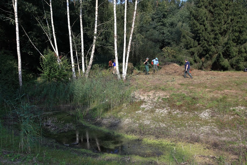 Zowel bij de herstelde poel als de al bestaande goed onderhouden poel verderop is een ringslanghoop aangelegd. en nu maar hopen op de ringslang!